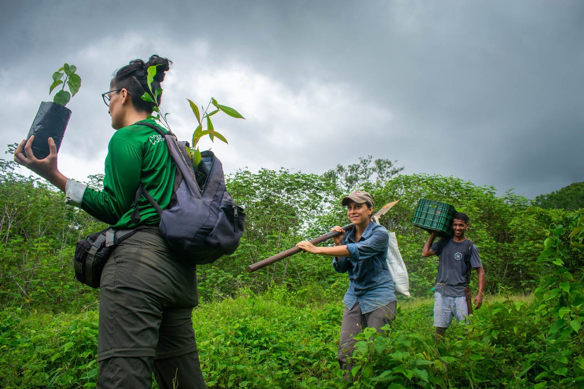Carrying seedlings for the restoration of climate corridors in the southern Pacific region of Costa Rica.