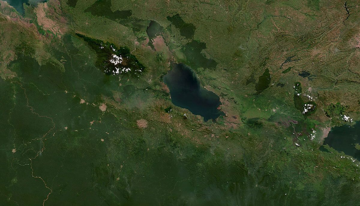 Virunga National Park, DRC. PlanetScope Mosaic Q1 2023, oriented with East at the top.