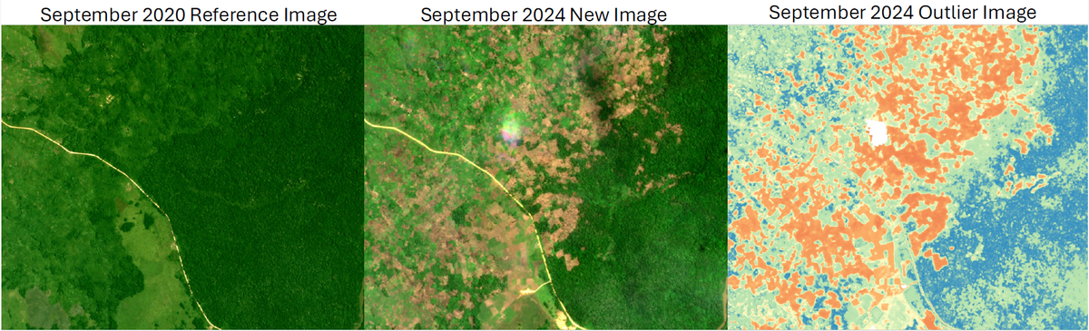 PlanetScope Mosaics from September 2020 and September 2024 near Virunga National Park, which the DECAF method uses to compare forest change. Credit: Microsoft AI for Good Lab